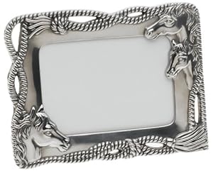 Access the most advanced RSS tools and use them to your advantage. | 2013-04-05 16:04:55.305084-04 Category: Home & Kitchen Vendor: Western-theme frame holds any 4-by-6-inch photo Hand-crafted of premium aluminum alloy Decorated with sculpted horses' heads an  Product Description : Amazon.comArthur Court Designs produces an abundance of decorative aluminum accessories for the home. Many feature intricately detailed animals, like this Western-theme picture frame decorated with sculpted horses' heads and a rope motif. Hand-crafted from a brightly polished aluminum alloy, the frame holds any four-by-six-inch photo and makes a great gift for the horse lover. Trays, pitchers, and many other unique items in the Horse collection are available separately to complement the frame. Consumers can feel good about buying Arthur Court products: A portion of all sales goes to fund wilderness and wildlife conservation, as well as environmental research and education. Owners Arthur and Elena Court live in the San Francisco area and create their artistic designs based on their extensive world travels. To preserve the fine luster of the metal, the frame can be dusted periodically or wiped clean by hand. --Ann Bieri Product Description : This styl ish photo frame by Arthur Court features a detailed and classic horsehead and rope motif around the border of the horizontally positioned frame, and holds your favorite 4 X 6 photo. The metal has a high-polished mirror finish and is manufactured with Arthur Court's signature premium aluminum alloy. Find out more |